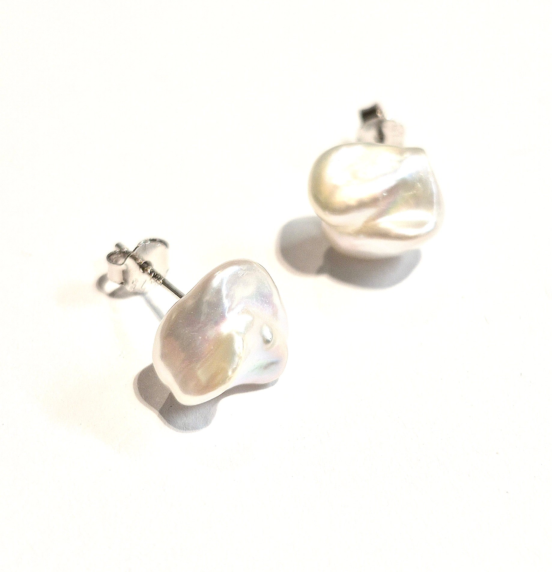 Genuine pearl stud earrings set in a sterling silver hypoallergenic post and backings.