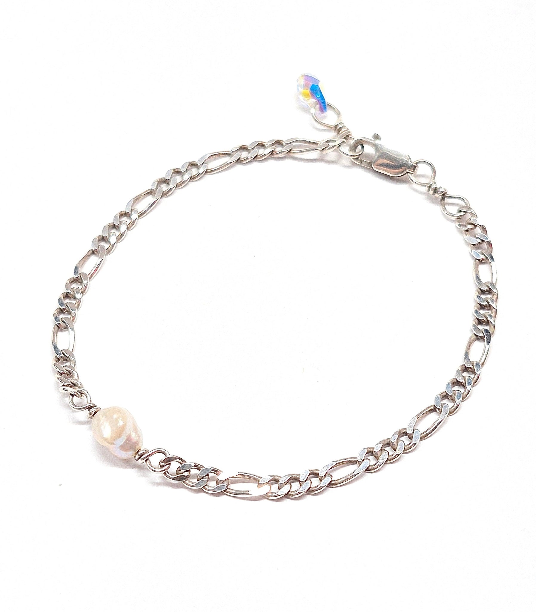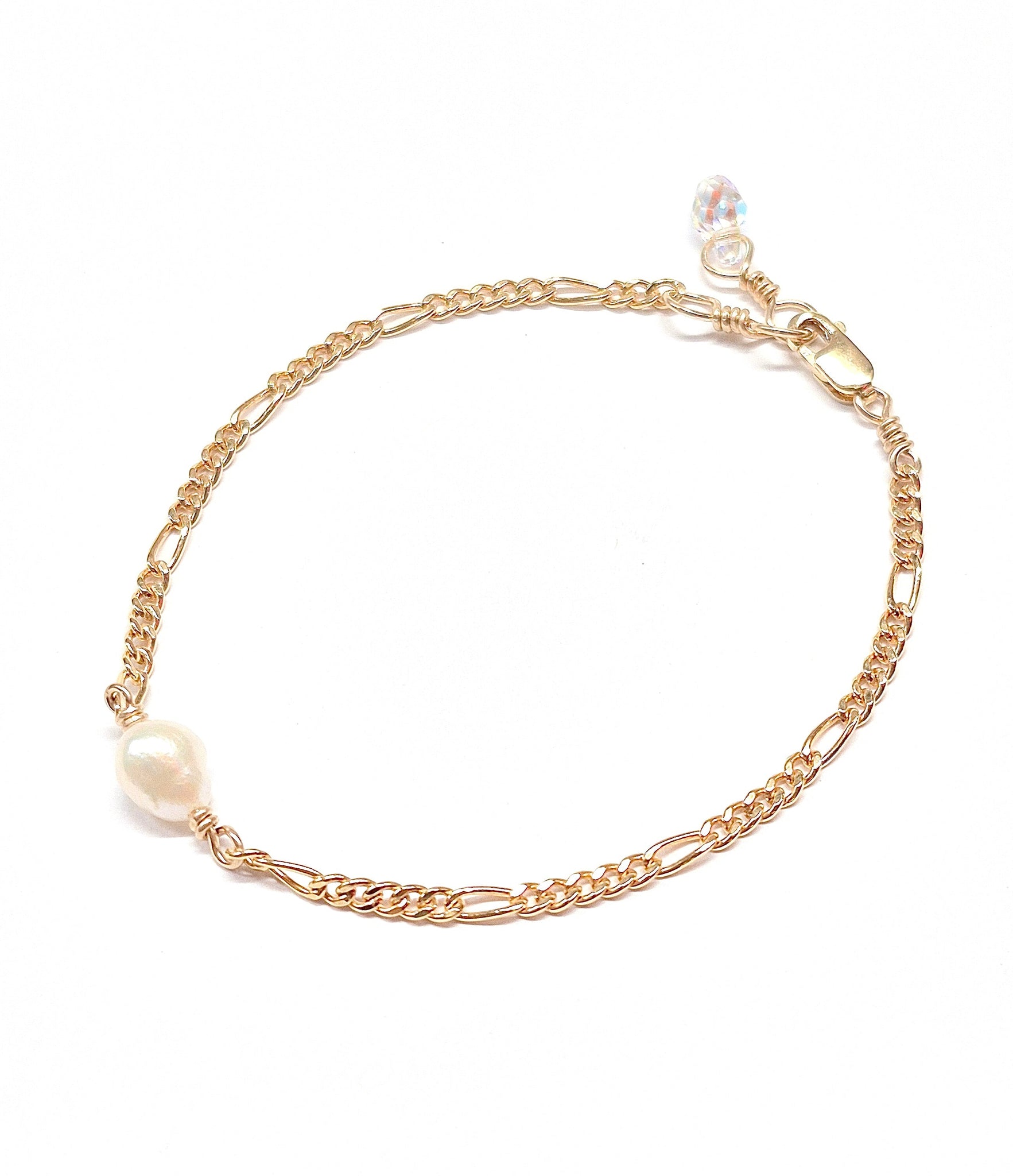 Incredibly gorgeous and long lasting 14k gold fill 3.2mm figaro chain adorned securely to Keshi Pearl from Japan.